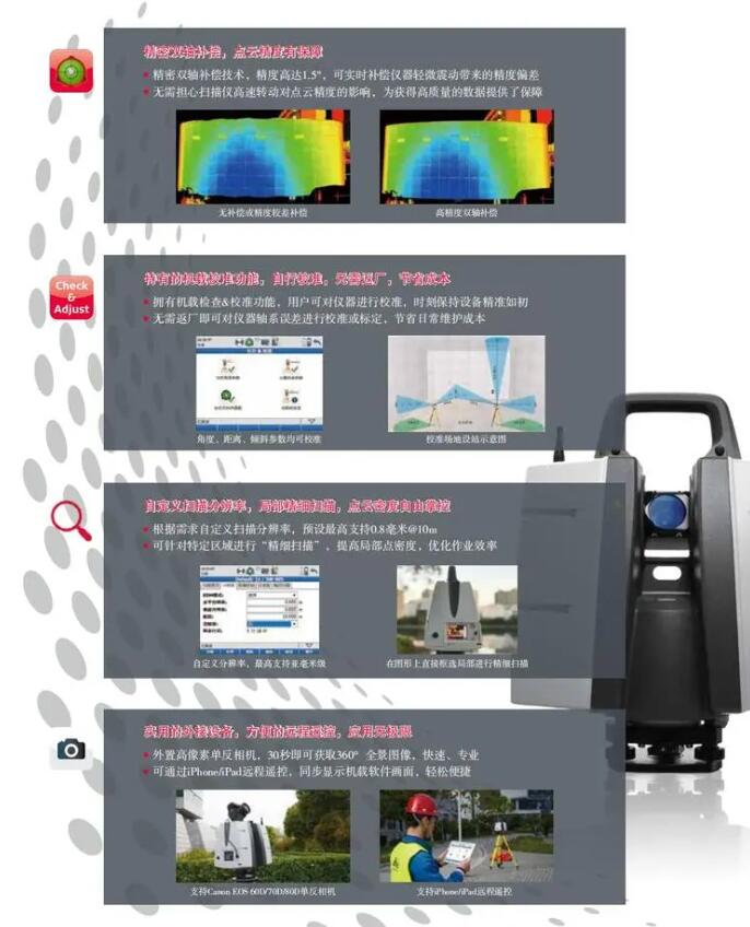 精密雙軸補償技術,精度高達1.5",可實時補償儀器輕微震動帶來的精度偏差